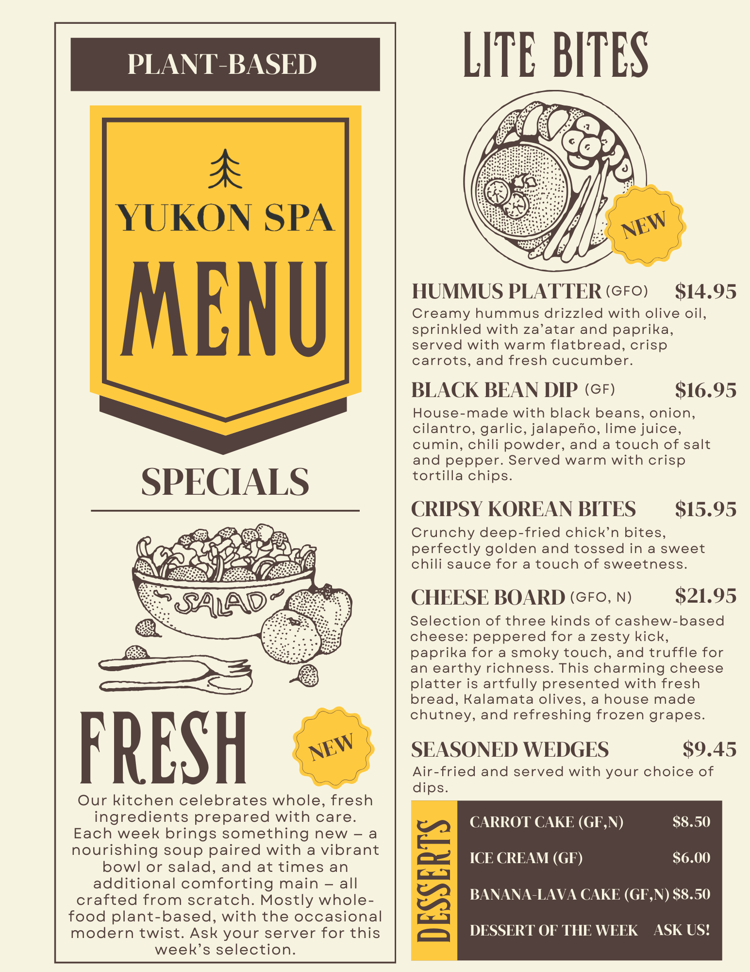 The Evergreen Table Restaurant is open Thursday to Monday evenings, 5:00 pm – 9:00 pm, offering a more refined dining experience while keeping the same welcoming atmosphere you know and love.